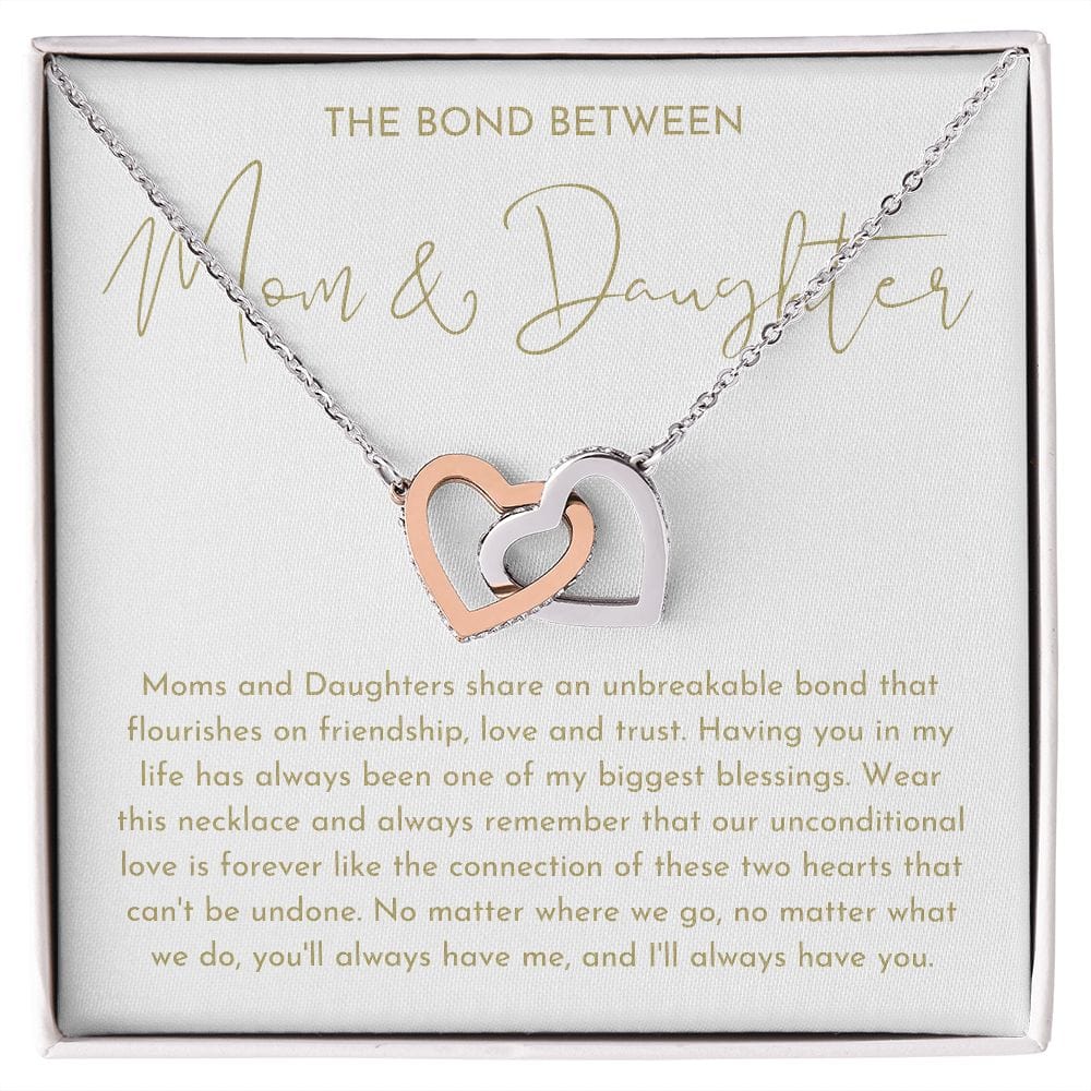 Give your Mom or Daughter the gift that symbolizes your never-ending love. Featuring two lovely hearts embellished with cubic zirconia crystals, this Interlocking Hearts necklace is the perfect and unique gift for that special someone this holiday season.